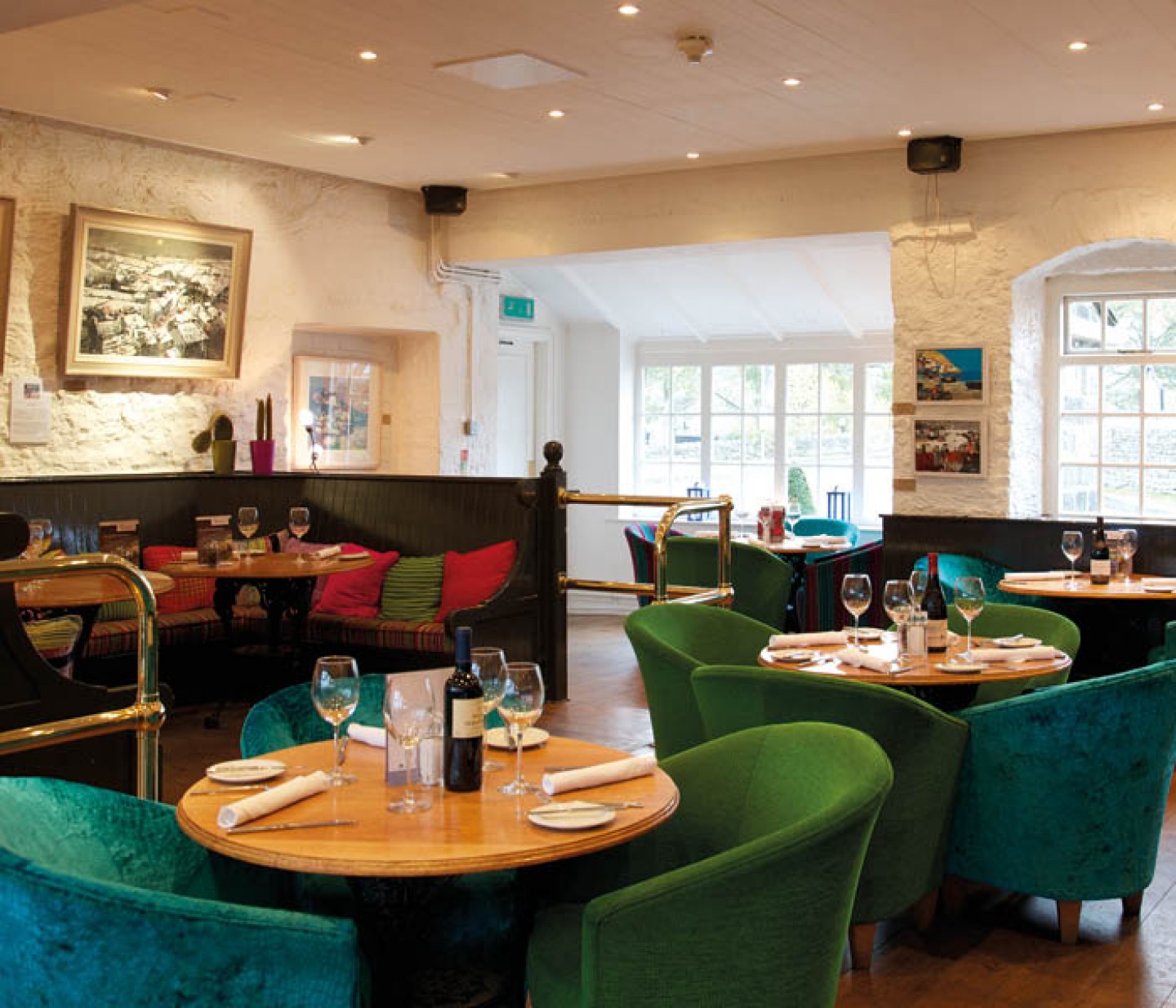 It sits in 33,000 acres of stunning Dales countryside on the Bolton Abbey Estate which is home to the Duke and Duchess of Devonshire. The original, now much extended, building stands in landscaped gardens whilst inside there’s a clever combination of cosy furniture and contemporary art interspersed with antiques and artwork from Chatsworth’s Devonshire collection. There’s also a spa in a converted barn across the road but sadly it was close for a refurb at the time we visited.