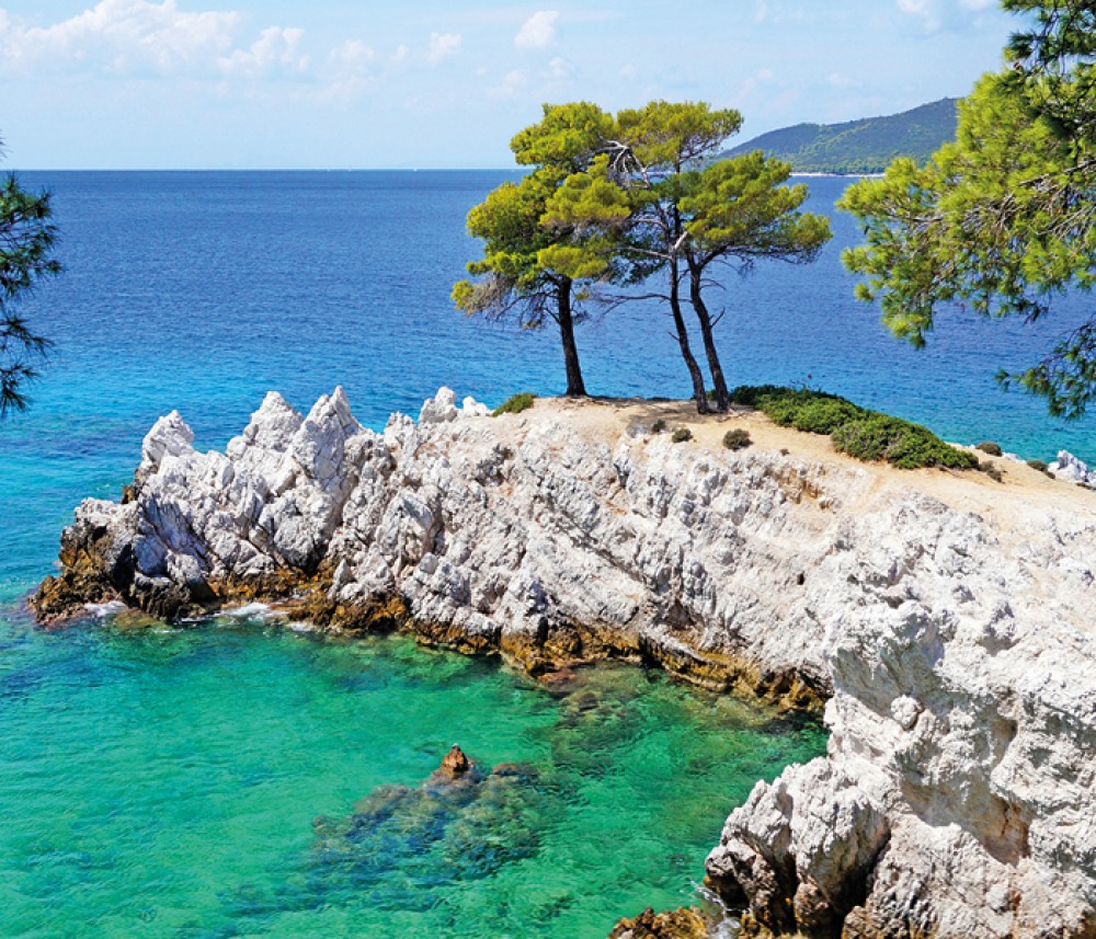 Sadly Villa Donna (which in the film was located on the cliffs above Glysteri Beach) doesn’t actually exist, but there are many villas and small hotels that have a similar vibe. Ysyhia is a pretty cottage with its own pool nestled in the countryside on Skopelos, with sensational views across the sea towards the mountains of Evvia. Villa Kentavros, one of three villas in their own grounds on the hillside above Skopelos Town, is perfect for a romantic getaway. Just a stone’s throw from the harbour, Skopelos Village Hotel offers a choice of a home-from-home or luxurious hotel suites, and the Adrina Resort & Spa is a beachfront beauty with 22 villas and 16 rooms.