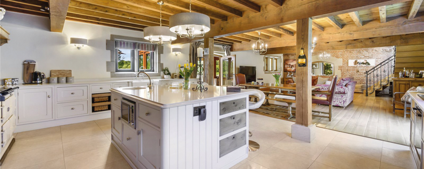Externally, Woolcombers Barn sits in a private and idyllic setting with views over open countryside and is accessed down a private road leading to a sliding electric gate. The generous driveway has parking for numerous cars and leads to a triple garage with electric up-and-over doors. The property has mature gardens with a wildlife pond and a spacious outbuilding which is currently used as kennels but could be a great home office or annex.