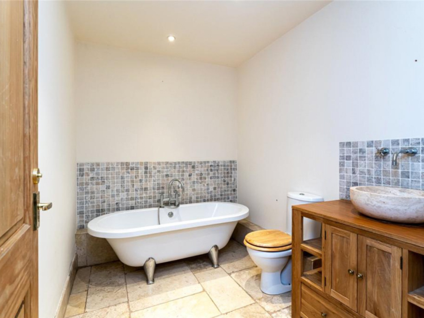 Jack’s Cottage further benefits from a double bedroom and family bathroom. This part of the house is ideal for a granny annexe, or self-contained guest accommodation. The property is heated throughout by underfloor heating, powered by a ground source heat pump, with Jerusalem limestone flooring. Many original features of the property have been kept, including original period windows and stonework.