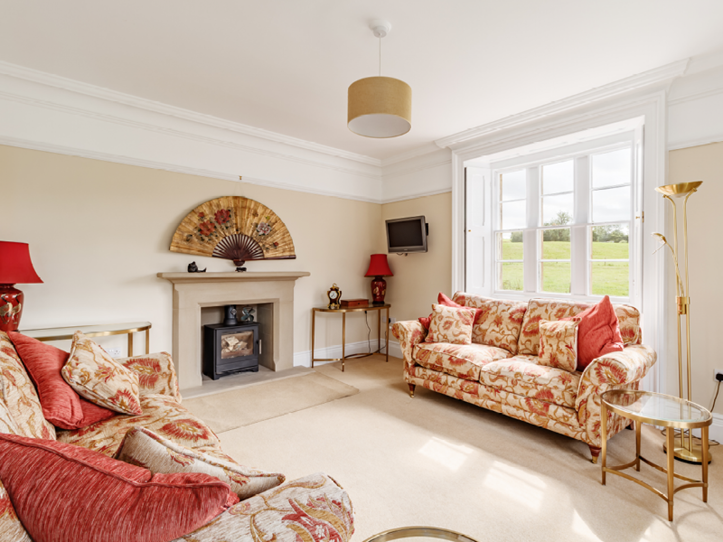 A formal entrance leads to a drawing room and dining room, both of which have attractive fireplaces. The cream-and-oak kitchen benefits from a range-style cooker and at the rear, a boot room leads to the sitting room and a shower room.