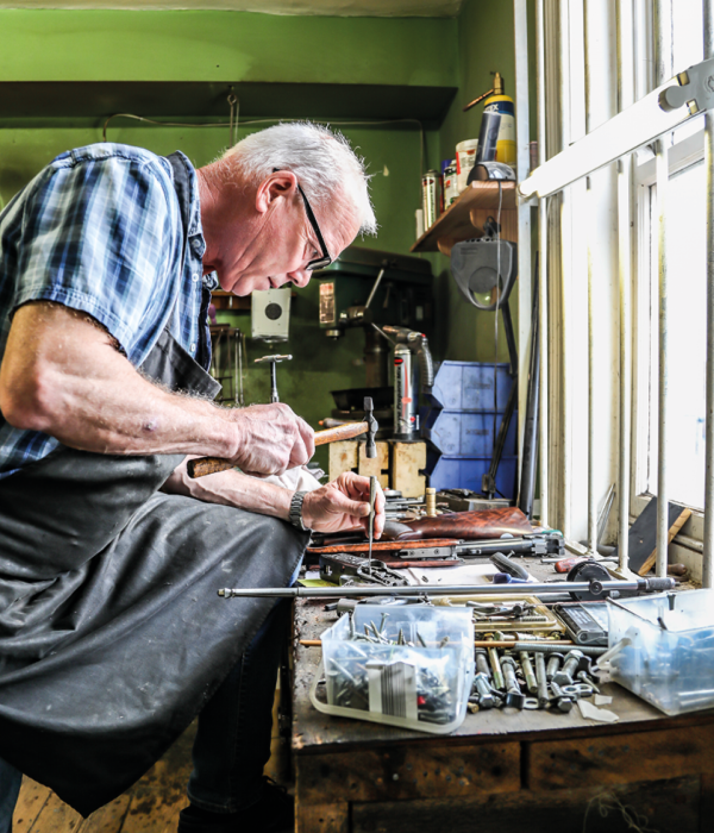 ‘We start with three different professions: a head stalker, a head keeper for pheasant and partridge, and a head keeper for grouse. The skillsets [section] at the beginning of each chapter outlines what skills and passion these guys have. In Yorkshire, the head grouse keeper is Andrew Orr from Egton Estate on the North York Moors, the head keeper for the pheasant/partridge is Josh [Beckett] from Wykeham Estate. Then you start going into what I call the “trades” – so gunsmith Chris Caine who was based at Pocklington (and has just retired in the last couple of months), and stick maker William Lambert in Hawes in the Yorkshire Dales who is rather extraordinary in stick making. Then we’ve got Croots England, arguably the best leather gun slip and leather cartridge bag makers in the country, and they’re based in Malton. Then there’s gundog trainer Richard King who is up near Thirsk and covers the whole patch and judges all over the country, Jonathan Fisher who makes game larders, Ali Moran who is the owner [and head chef] of The Blacksmiths Arms in Lastingham (who specialise in game), and butcher Wilsons of York.