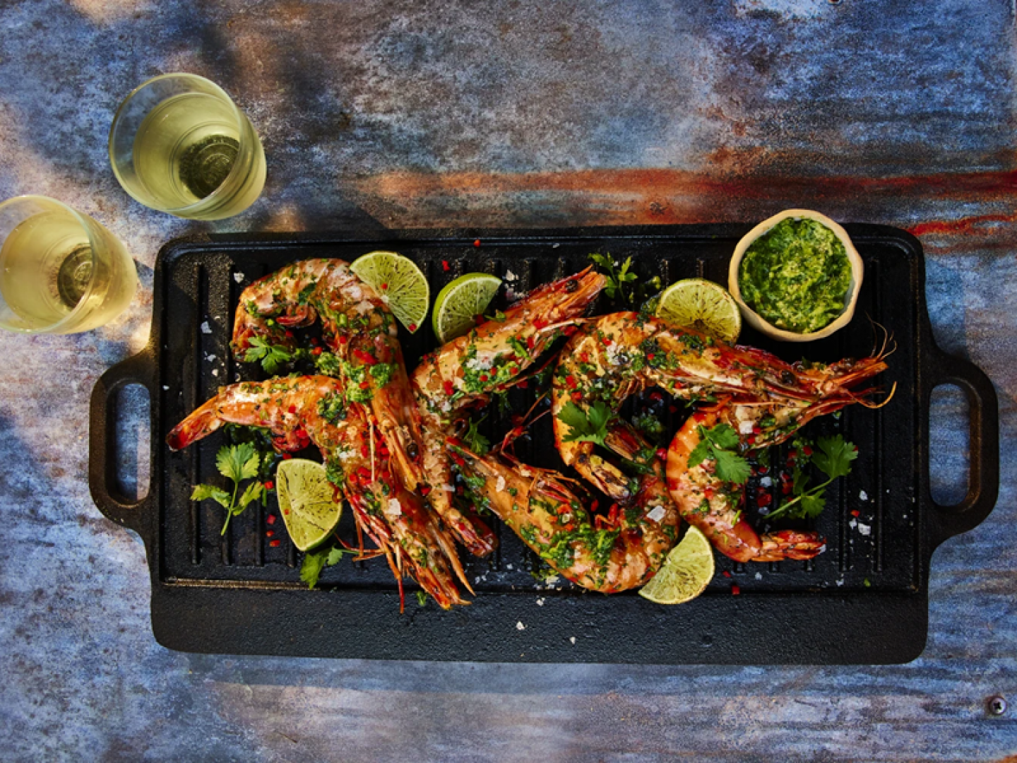 BBQ Prawns with Chilli, Ginger, Coriander and Fresh Lime