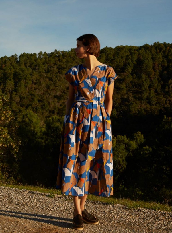 Print tie-neck dress