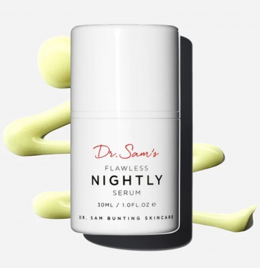 Dr Sam’s Flawless Nightly Serum, £44 with 10% niacinamide, softens laughter lines, minimises pores and calms blemishes for a visibly healthier glow.