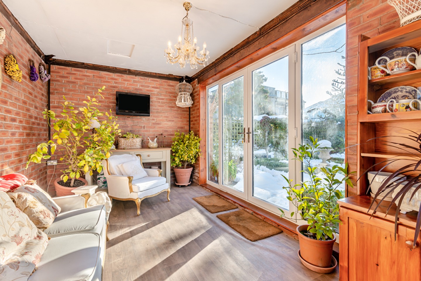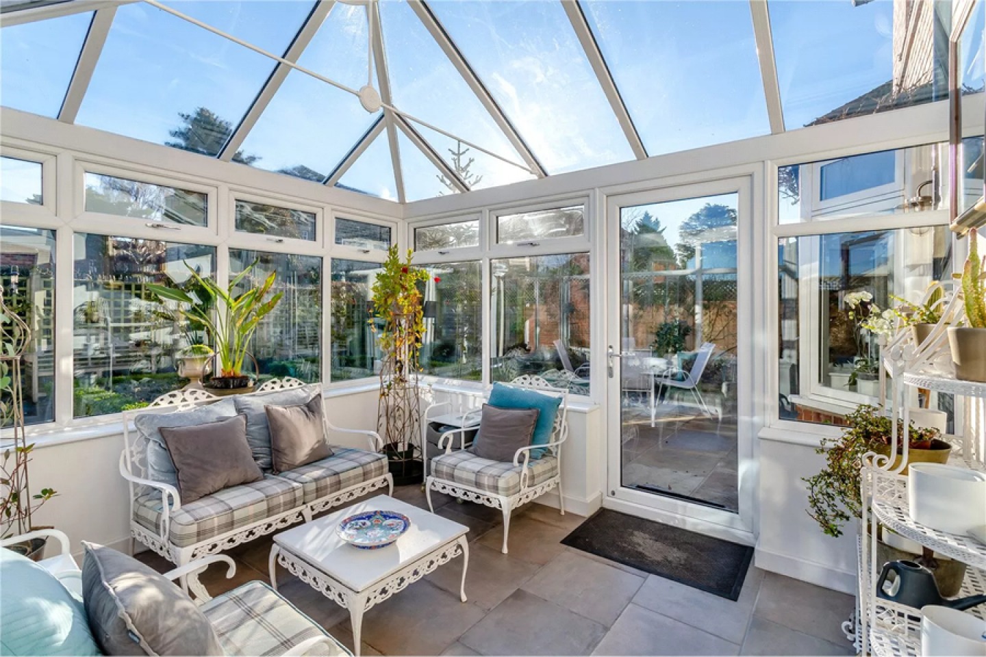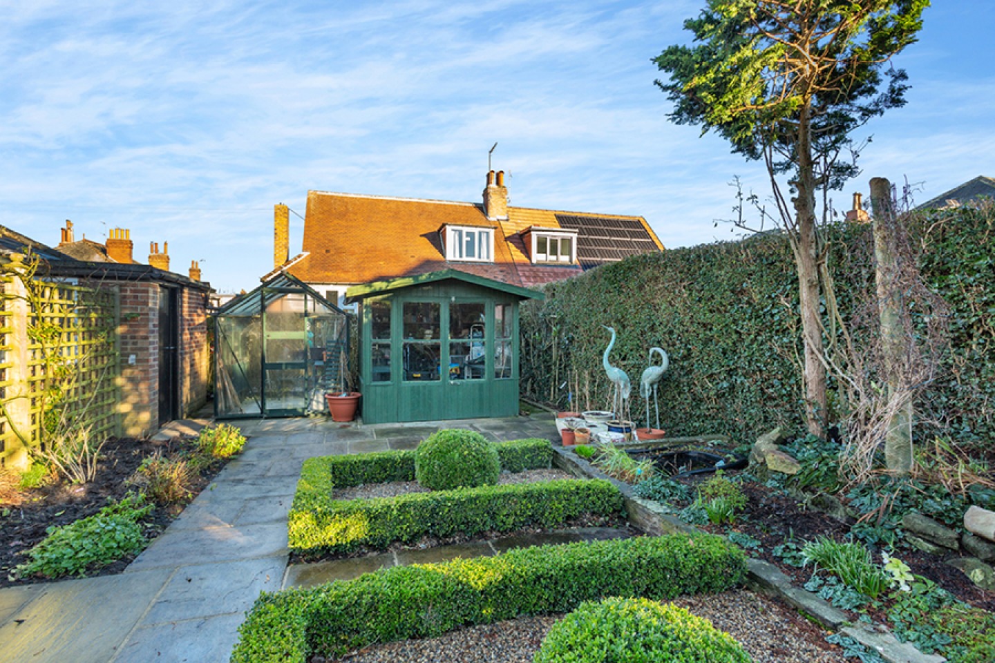 The property is approached by a side driveway, with parking for multiple vehicles. The parterre rear gardens are landscaped and feature terraced areas. A neighbouring garden through an archway is great for planting and potting, with a greenhouse for the avid gardener. The garden room adjacent to the house is fully glazed to enjoy the view whilst relaxing.