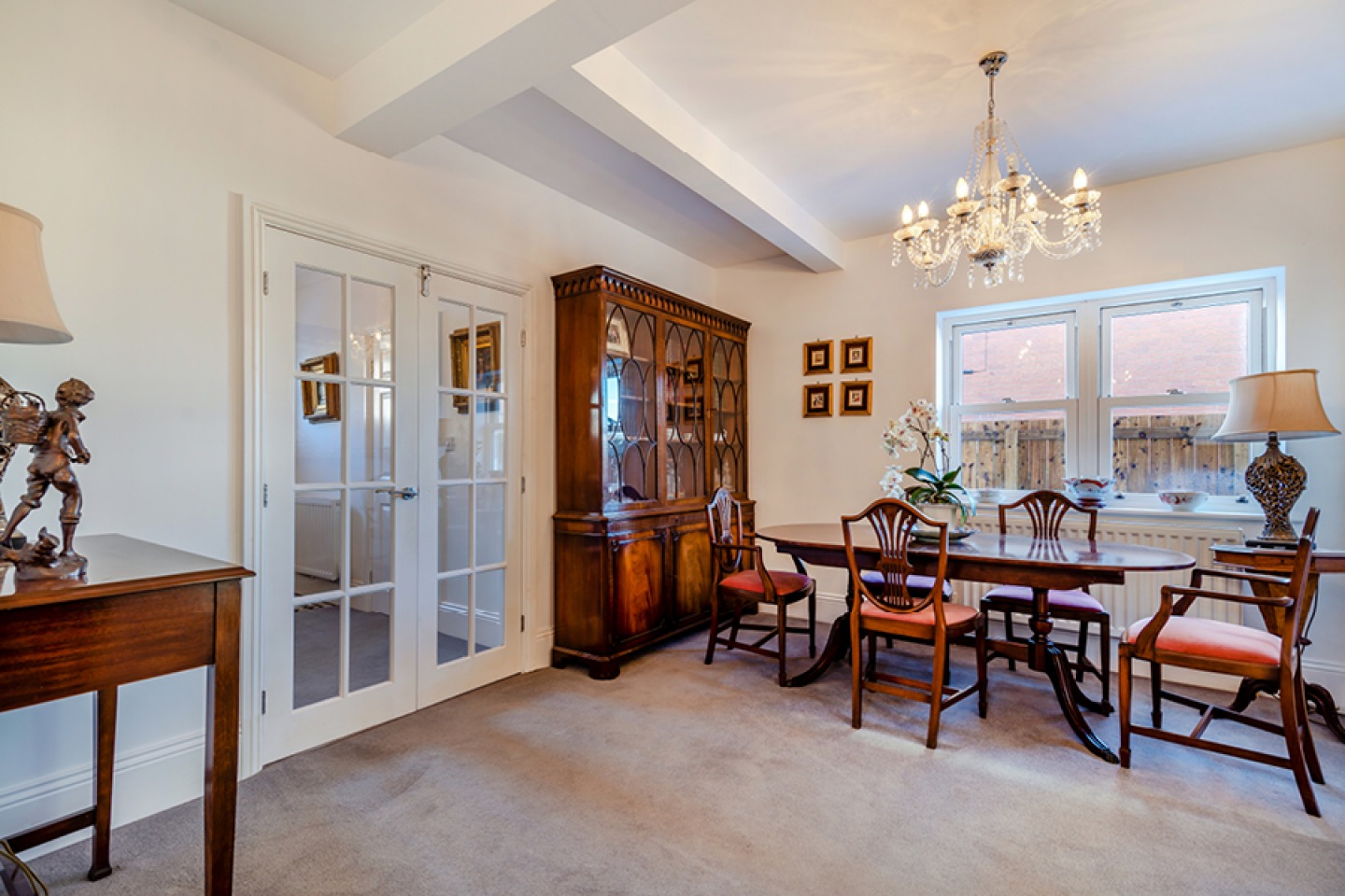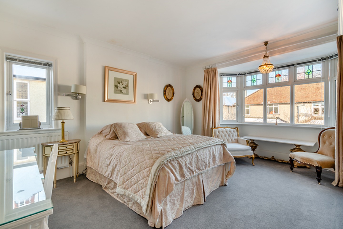 On the first floor are three double bedrooms, including the principal suite with a fitted dressing room and ensuite with freestanding roll-top bath. The second bedroom also has an ensuite and there is also a family shower room on this floor. The second floor is a converted attic space with eaves storage, currently used as a bedroom.