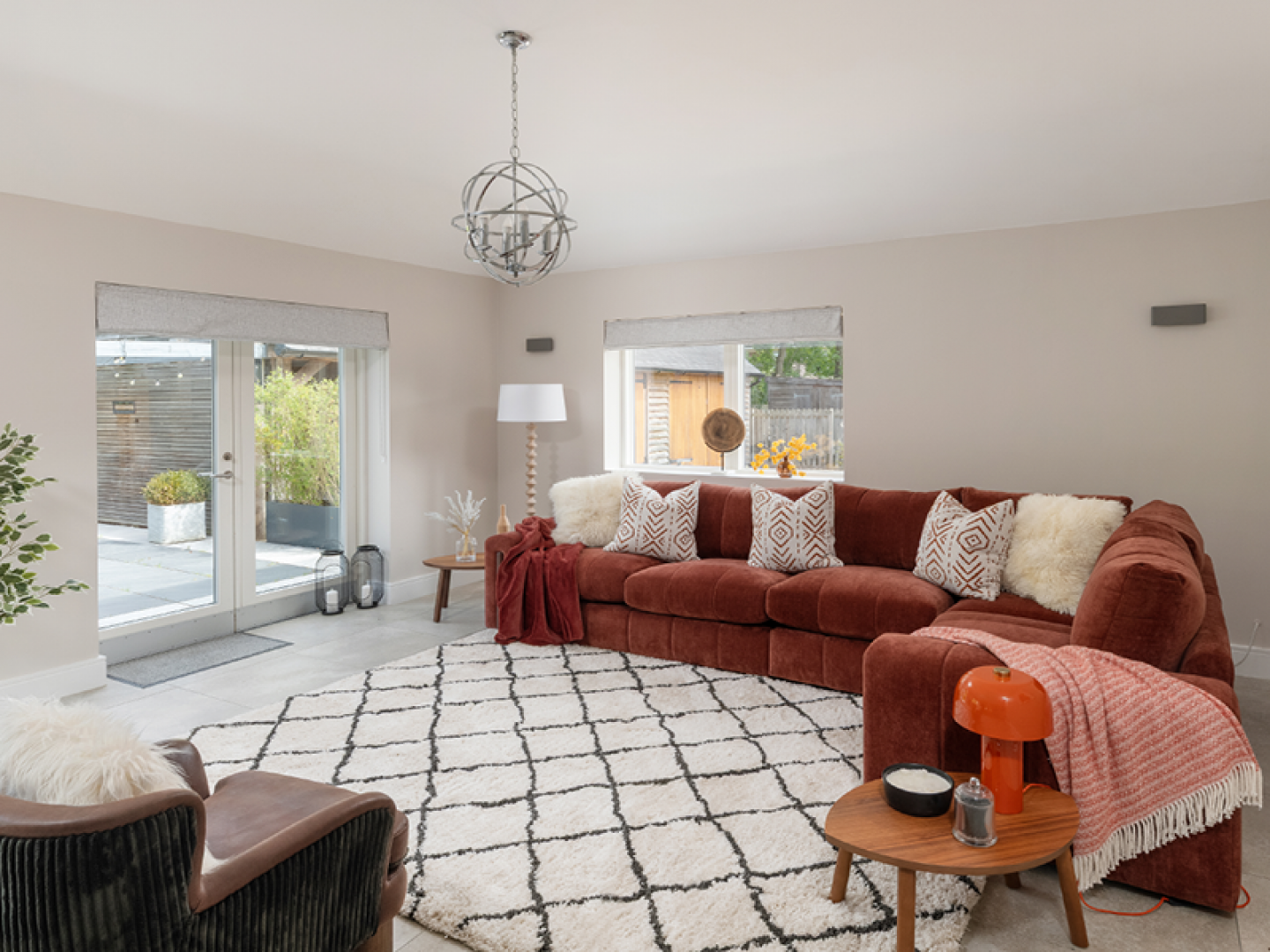 The gardens are a key feature of this home with tall trees and shrubs and the Scandinavian garden house to the rear. It has a central stove and fireplace to keep cosy whilst entertaining and socialising in the colder months.