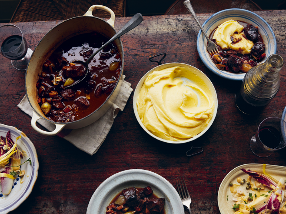Add the baby onions and button mushrooms to the beef, then place back in the oven for a final hour. At this stage your sauce should be luscious and thick: beef completely tender and melting and all vegetables nicely cooked. Finish with the chopped parsley and serve.