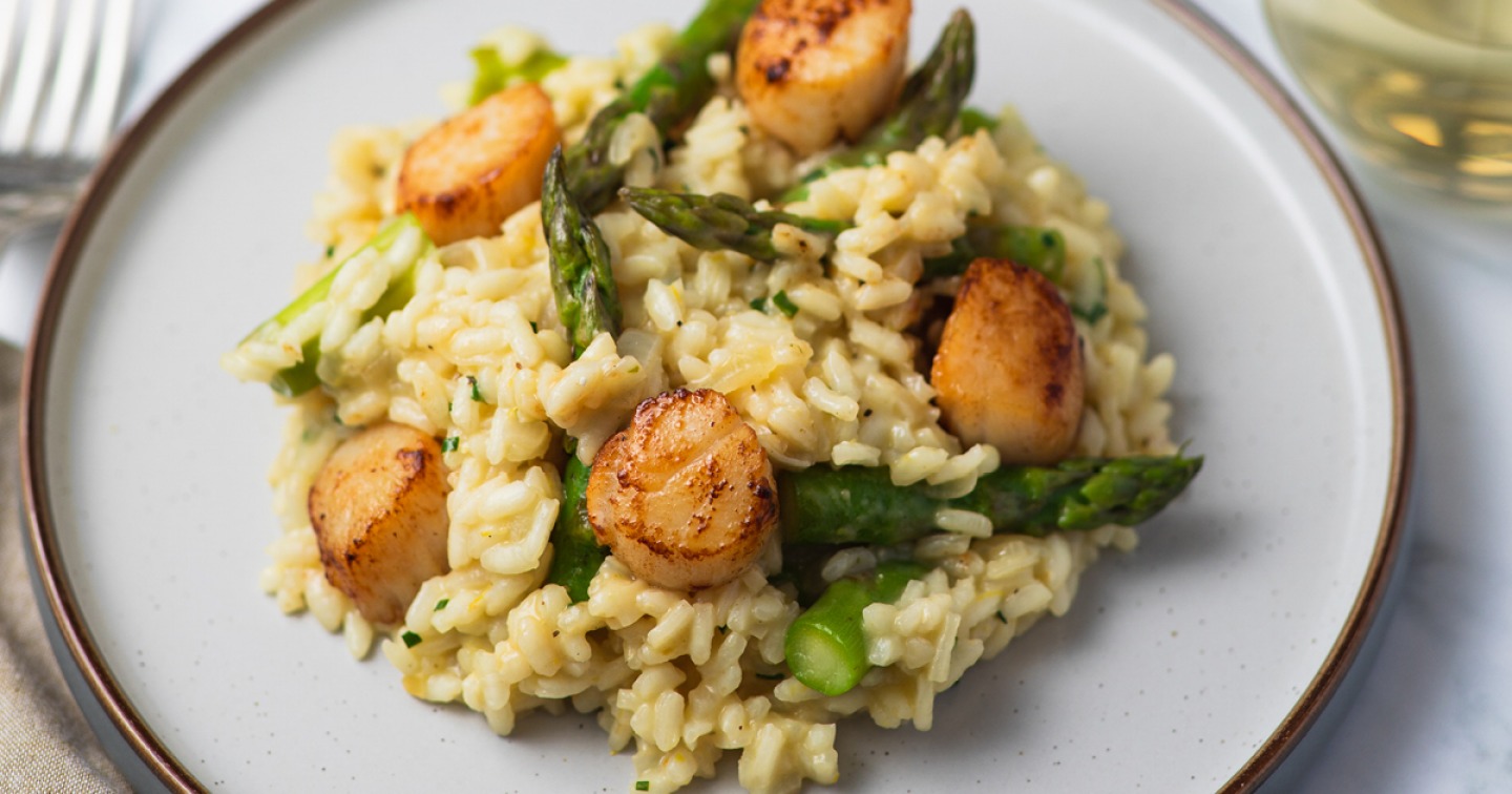 Paired perfectly with tender scallops and crunchy green spears, this risotto is simple yet delicious.