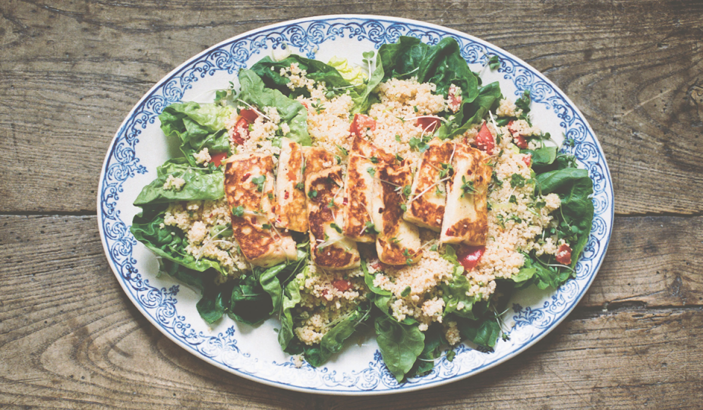 Razan and Raghid make their cheese in a charming, historic area of Calderdale in West Yorkshire and this recipe is a favourite of Razan's. She likes to cook this for her family, generally using mint-flavoured Yorkshire Squeaky, though you could use the plain version and add fresh mint to the tabbouleh. I've enjoyed this with the chilli-flavoured cheese, to give the dish a little heat.