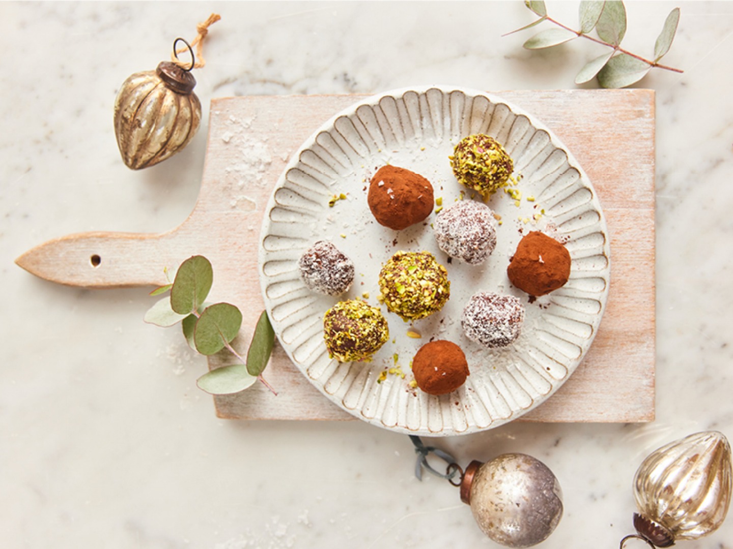 Roll in cocoa powder, desiccated coconut or finely chopped pistachios to for a tasty finishing touch.