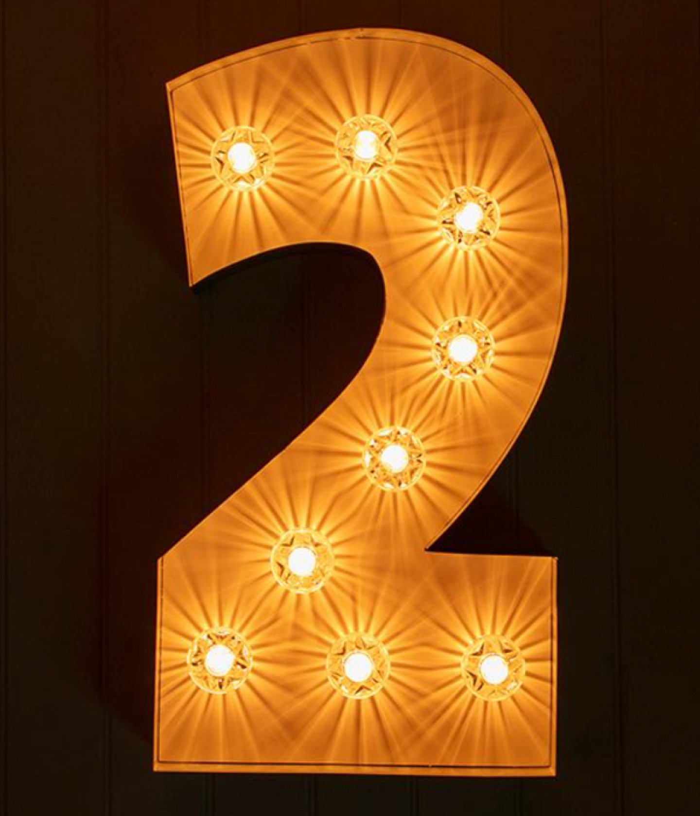 Just the two of us. Illuminated aluminium Number 2, from £95 RE, Corbridge refoundobjects.com
