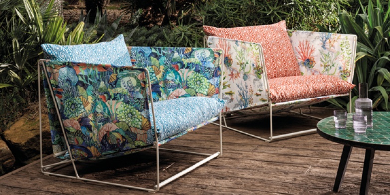 Osborne and Little’s latest collection of vibrant indoor/outdoor fabrics are perfect for the garden and terrace, with exotic birds, underwater scenes and palms. Beach House fabrics, Osborne & Little at Glenwood Interiors, Darlington