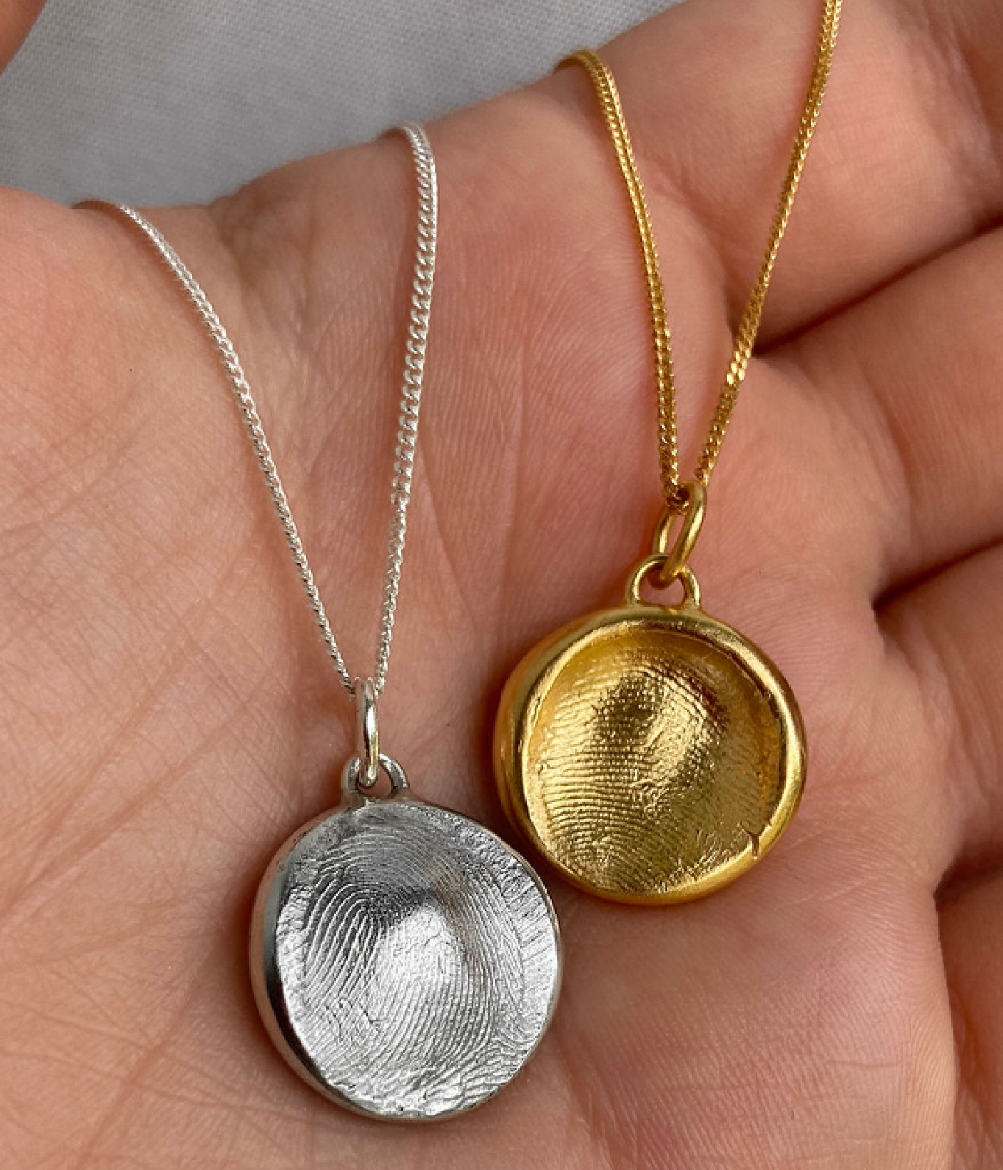 Following simple instructions and an online tutorial at home, the exact fingerprints that are captured with this kit will become keepsake jewellery – necklaces, bracelets or cufflinks.